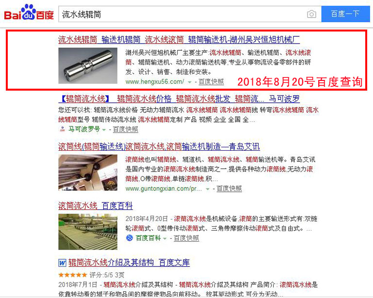 流水線滾筒 百度(PC)自然排名第1名,360搜索、搜狗、手機搜索等均也有比較好的排名...
